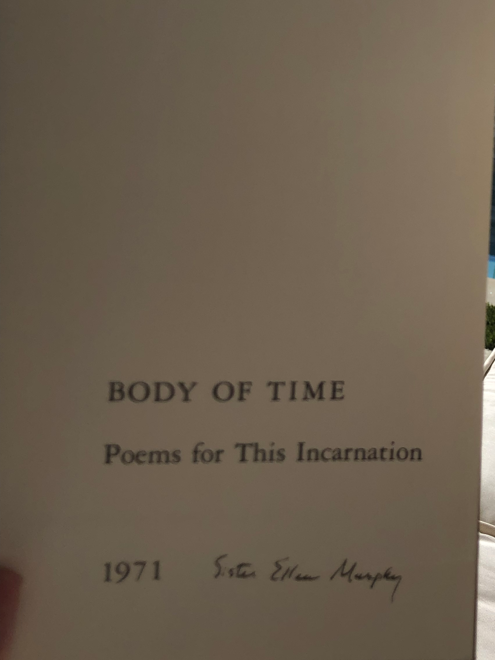 Writing helps me silence and sort through the noise of daily life, but I usually have to connect my posts to some sort of external stimuli. Recently, I’ve been reflecting on a collection of poems written by my great aunt, Sister Ellen Murphy. Her collection, called “Body of Time: Poems for this Incarnation” really struck a chord during this particular life chapter. Whether it’s the inevitability of passing time or the fading memories of days gone, it’s difficult to decipher. Maybe these reflections will provide clarity.