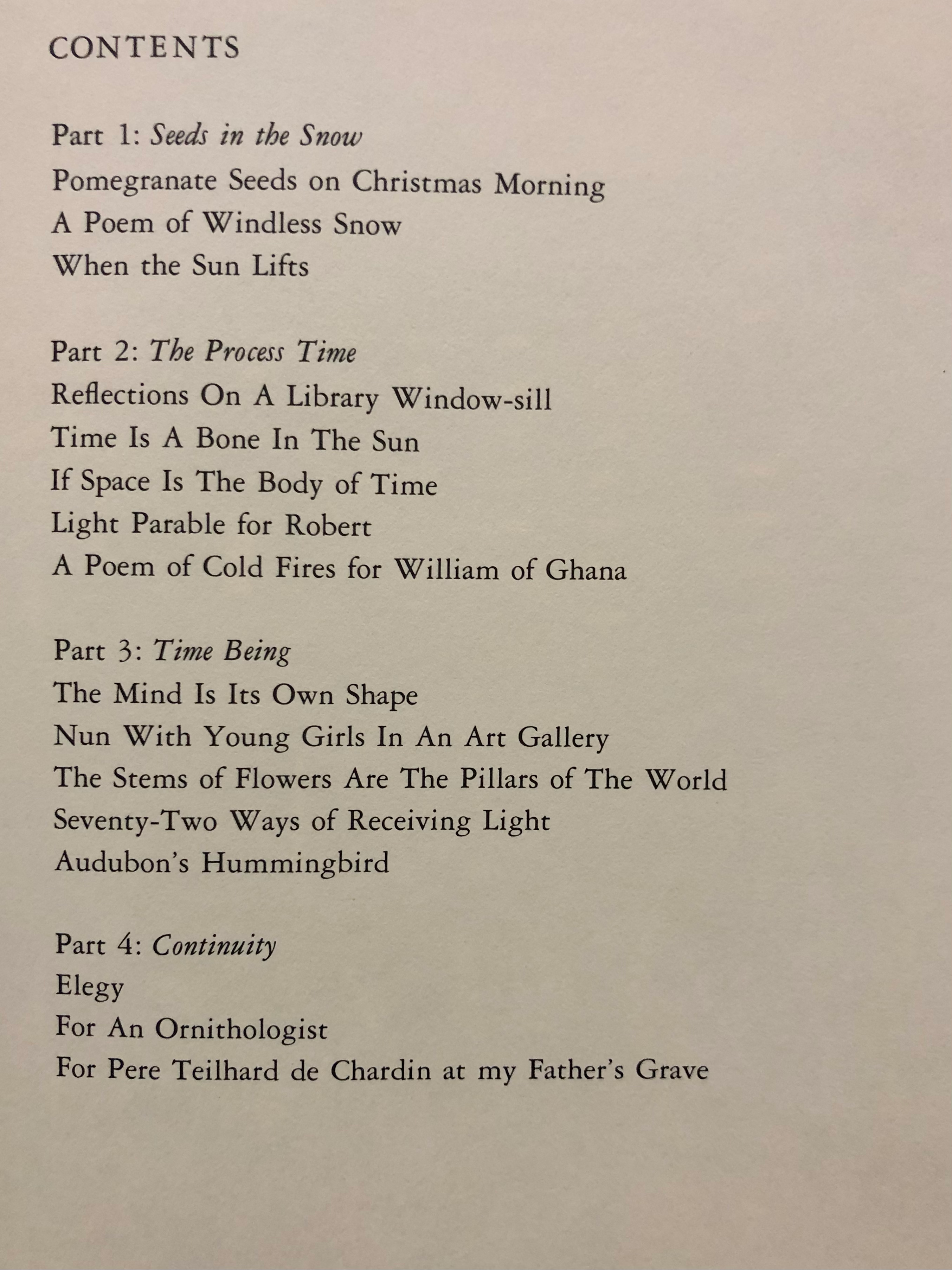 Sister Ellen’s poetry collection is broken into four sections to align with the four distinct seasons in the upper Midwest. One constant throughout all the pieces is the unwavering beauty of nature, even as time continues to alter the natural world and our experience within it. My aunt recently shared with me that Ellen was a “deep thinker” and a “great poet.” It makes me wonder if those two qualities are dependent on each other.